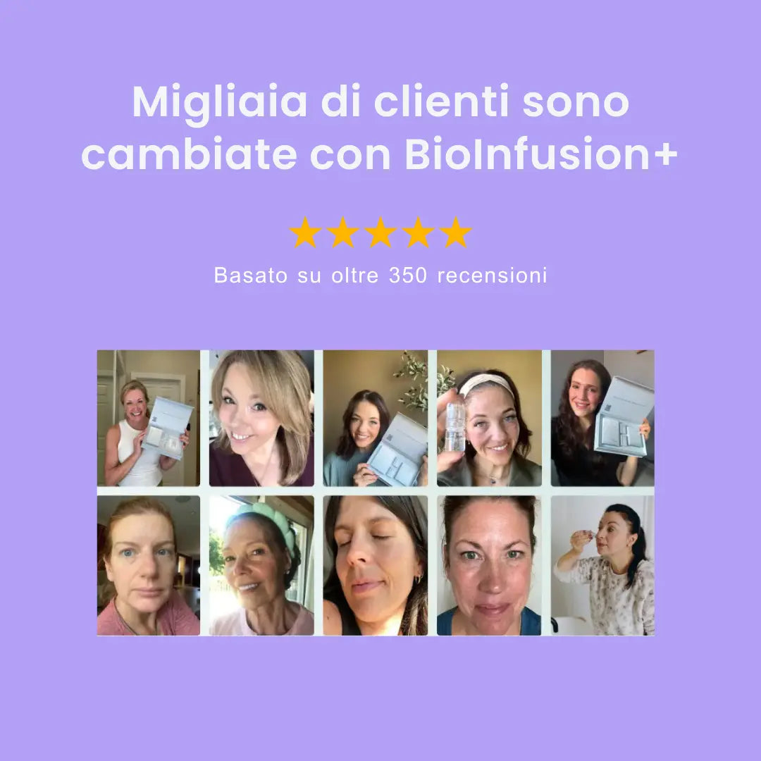 Bastano 10 minuti per completare il tuo trattamento di bellezza BioInfusion+. Segui questi semplici 4 passi per una pelle istantaneamente più giovane e luminosa. I dermatologi consigliano un trattamento ogni 10 giorni per risultati ottimali.