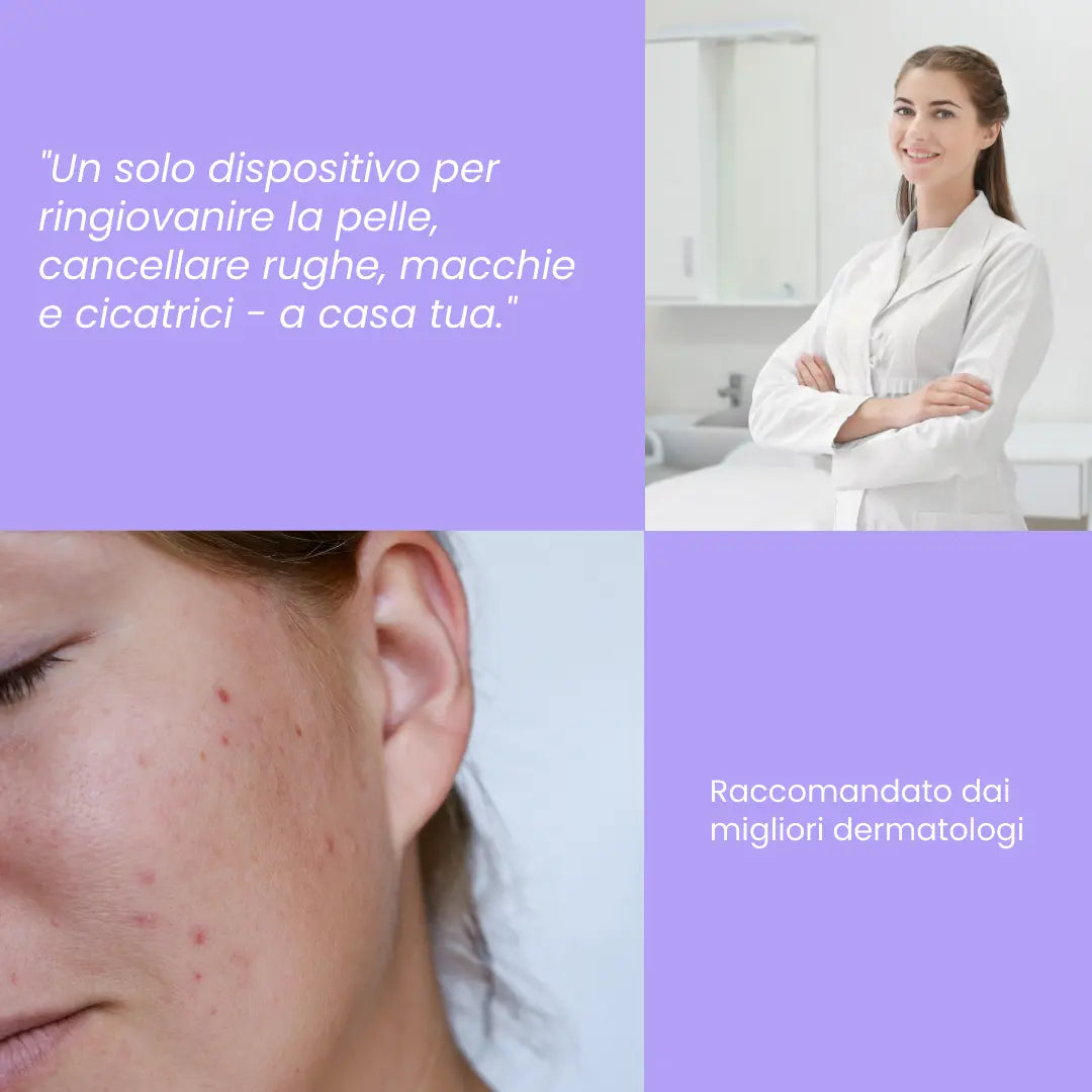 Elimina le cicatrici da acne, macchie scure e rughe con poche applicazioni da casa tua. Risultati visibili o rimborso completo!